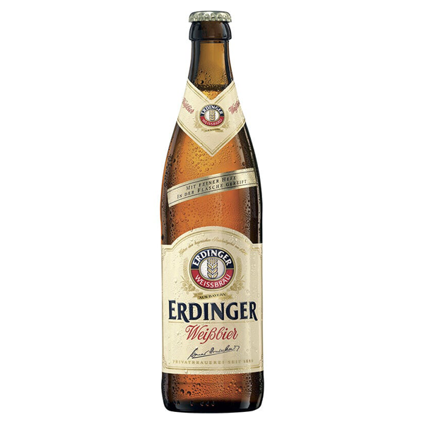 ERDINGER Weissbier é cerveja clássica da Baviera produzida desde 1886 que combina na perfeição os aromas dos maltes com uma suavidade elegante dos lúpulos, estando o segredo nas leveduras únicas da Erdinger Weissbrau, que conferem notas frutadas e um sabo r fresco. A maturação típica das cervejas Bávaras, faz com que a Erdinger possa calmamente desenvolver a sua fantástica harmonia de sabores e aromas.